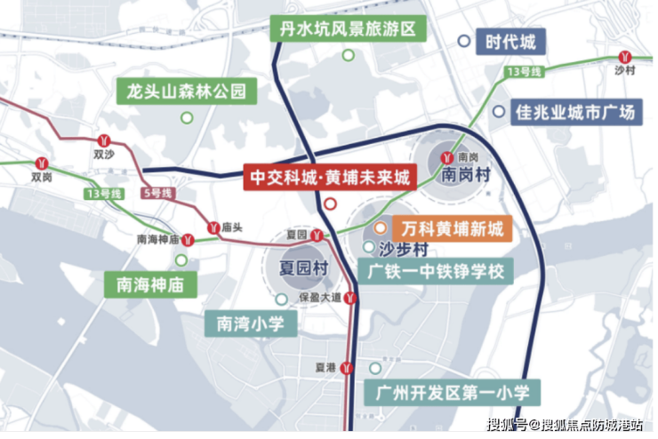 项目地处黄埔区老黄埔板块东区南岗片区,地理位置具备明显区位优势。紧邻黄埔东路、广深沿江高速及开发大道,形成完善的高快速路网,轻松实现一小时内通达广州、深圳、东莞等珠三角核心区域。公共交通方面,项目南侧临近地铁5号线和13号线,未来出行便利性大幅提升。虽然目前地铁直达尚需部分时间,但完善的公交及道路网络有效支撑日常出行需求。此外,项目毗邻城市文化体育配套,地理位置集交通便捷与文旅资源于一体,为居民提供多维度生活便利。整体来看,黄埔未来城凭借优越的区位条件,成为连接城市核心与周边区域的重要枢纽,彰显出极佳的发展潜力。