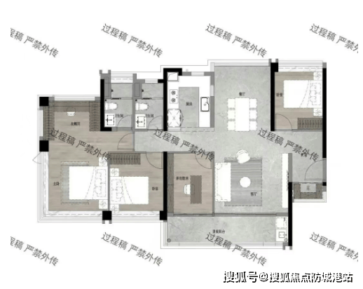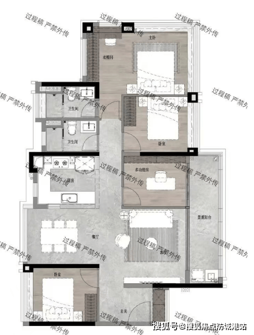 105平方米四房两厅两卫:户型方正,南北通透,适合改善型家庭。