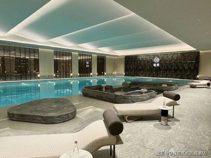 然而,真正让瓏熙会所脱颖而出的,是那座堪称“豪华”的恒温泳池。这是目前我在见过的项目中,规模最大、设施最完善的恒温泳池之一。泳池的设计完全参照星级度假酒店的标准,不仅水质清澈见底,水温恒定舒适,更在细节上下足了功夫。