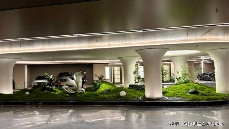 很多人可能忽略了车库的重要性,但在瓏熙,连车库都被打造成了艺术品。通过车库可以直接通往会所,这种动线设计极大地提升了居住的便利性。更重要的是,车库的颜值相当高。