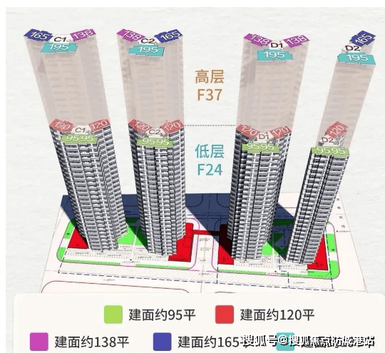 项目规划了4栋37层高层住宅,都做了高低分区设计——低区(3-24层)两梯四户,主打90-160㎡刚需改善户型;高区(25-37层)两梯三户,以120-195㎡江景大平层为主,不管是新婚小夫妻还是二胎家庭,都能找到合适的户型。更贴心的是,高低区电梯独立运行,不用再为早晚高峰候梯发愁,出行效率直接提升。