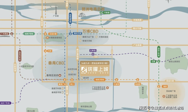 项目地处番禺“北万博,南区府”的黄金分割点。既能享受万博CBD的产业辐射,又能承接区府板块的行政与生活服务资源,是番禺未来十年的人口与产业导入核心区。