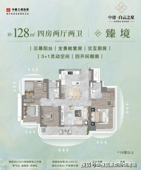 该户型总价328万起,低门槛即可上车白云核心区,性价比极高。精装交付标准搭配华为全屋智能系统,让年轻人在入住之初就能享受到科技感十足的智慧生活。无论是单身贵族还是新婚夫妇,这个户型都能满足他们对美好生活的向往,是开启人生新篇章的理想起点。8.2 改善主力户型:建面128㎡4房