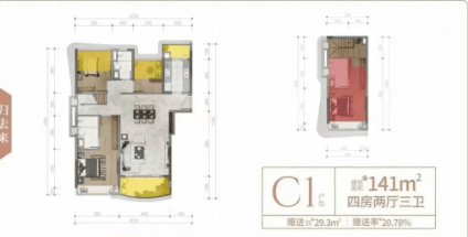 中冶逸璟广场主打99-141㎡三至四房户型,所有户型均采用南北通透设计,确保室内光线充足和空气流通。其中: