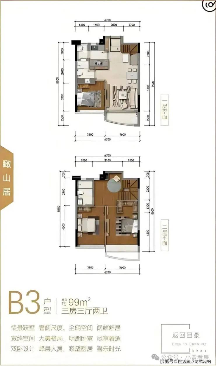 99㎡三房:竖厅布局搭配双阳台,厨房与餐厅动线流畅,适合年轻家庭。