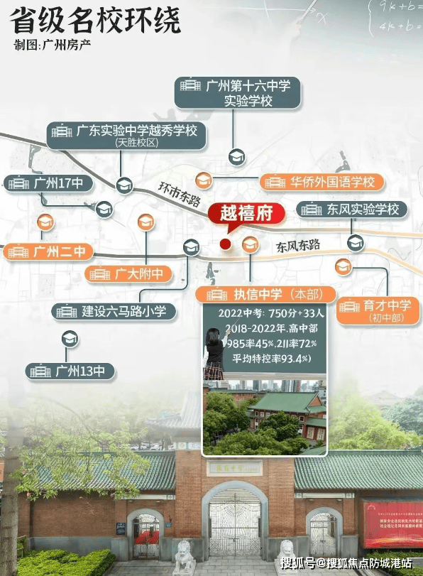 保隆越禧府位于华乐街道优质教育圈,对口越秀区重点小学——建设六马路小学(参考往年招生政策)。根据2023年小升初政策,可参与10所优质中学摇号,其中包含6所省级名校,如执信中学本部、育才中学、华侨外国语学校等,确保了孩子的教育质量。