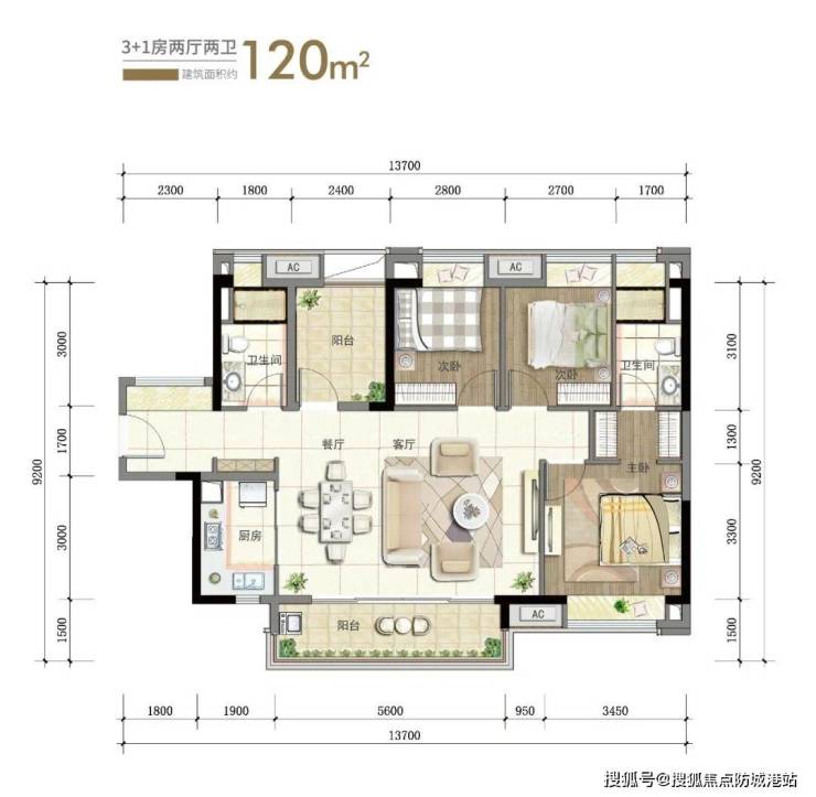 绿城在售的户型有99/120㎡两种,一个是竖厅三房,一个是横厅四房,使用率高。