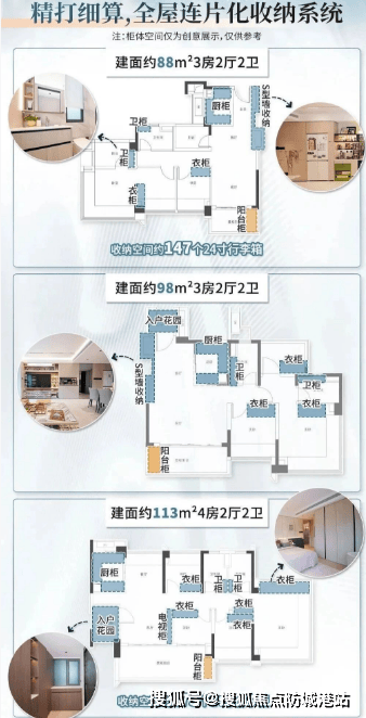 所有户型均为南向设计,注重实用率和收纳空间的设计,满足不同家庭的需求。