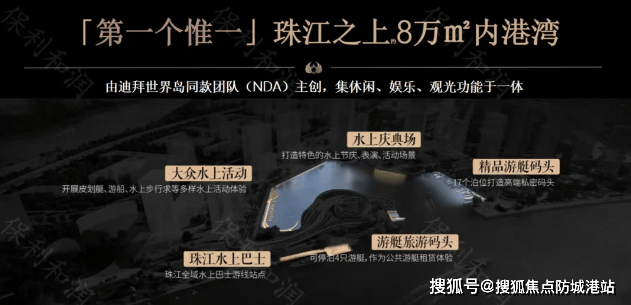 项目依托约8万㎡的内港湾,打造出集休闲、娱乐、观光于一体的五大功能区,将成为继万象城、三馆合一、双太古之后的第四大地标。此外,周边还有广州国际健康港、星河COCOPARK、广粤天地等丰富的商业资源,为居民提供全方位的生活便利。