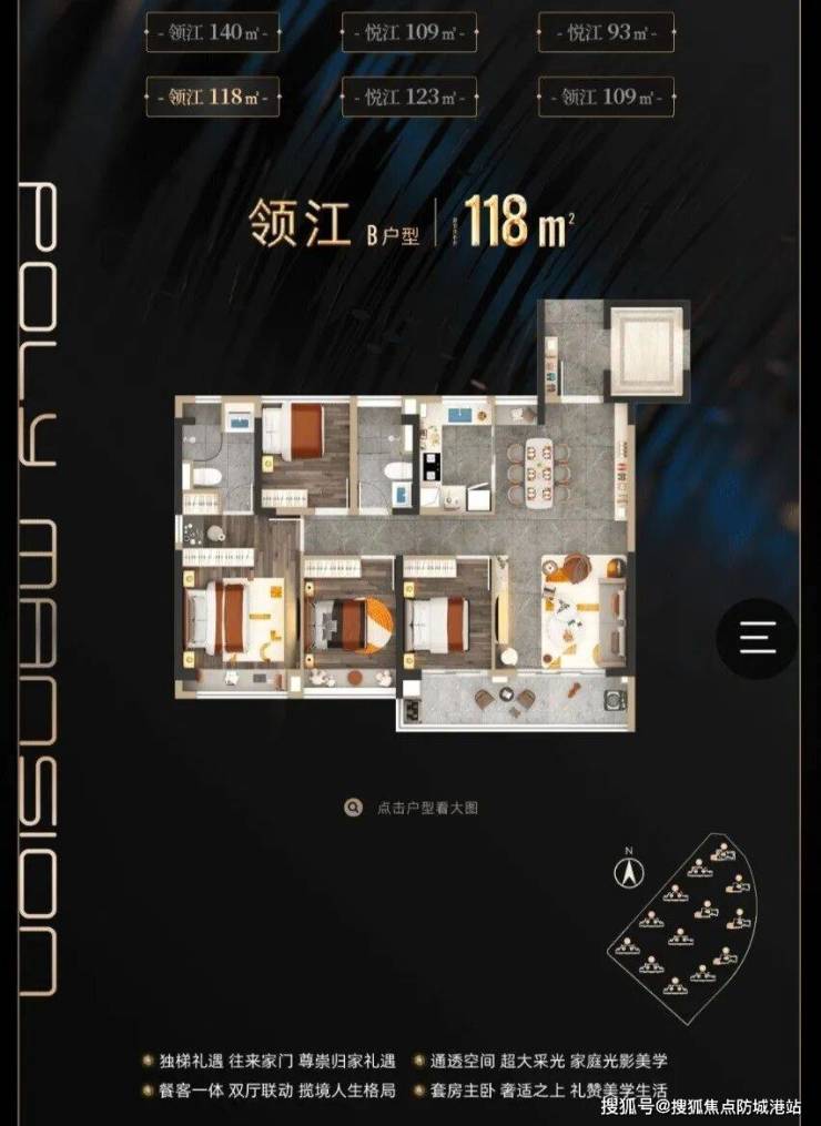 核心卖点二:央企保利匠心 板式奢宅品质:项目由央企保利集团打造,保利作为国资委大型中央企业,连续7年上榜世界500强,排名174位,业务遍布全球近100个国家,拥有丰富的高端住宅开发经验和军工级建筑品质。项目打造纯板式奢宅,采用点阵式布局,每户一字排开,阳光恣意入怀,部分楼栋独梯入户,彰显塔尖生活仪式感,精工造诣尽显高端人居风范。