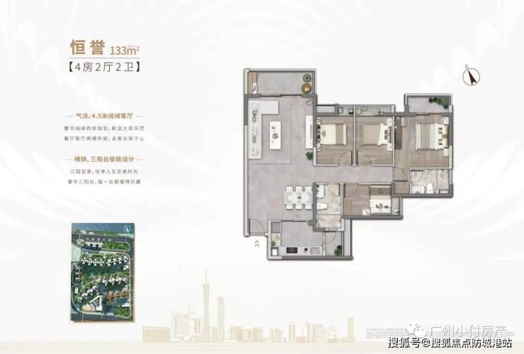 凯粤湾享受稀缺江景资源,沿江布局,三江汇聚,形成天然景观屏障。小区规划超6万平方米私家滨江园林,配套成熟国际化商业广场,总户数约7000余户,形成高知精英聚集的稳定圈层。项目依托白鹅潭CBD的发展规划,兼具政策背书与区位稀缺性,定位为广州中心区高端临江住宅标杆,同时满足改善型及高端家庭对居住、教育、交通及生活便利性的全方位需求。