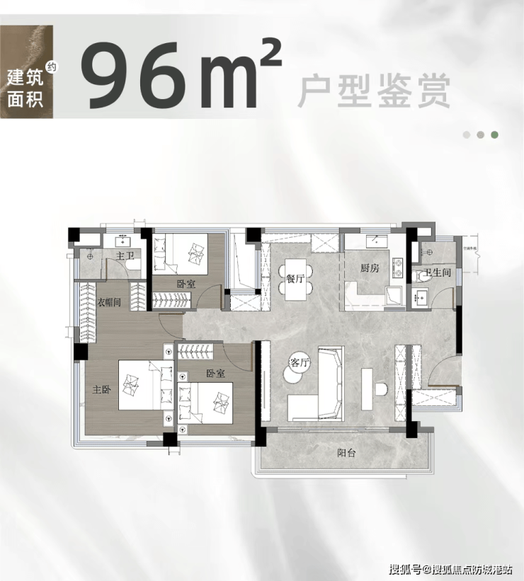建面约96㎡3+X房两卫:建面使用率110-118%,套内使用率138-148%,使用面积约111-115㎡,与市面110-120㎡三四房产品使用面积相当,甚至媲美竞品143㎡四房空间。3+X灵动户型设计,可根据家庭需求改造为书房、儿童房等功能区域,满足改善家庭的多元化需求,全屋收纳系统让空间利用率最大化。