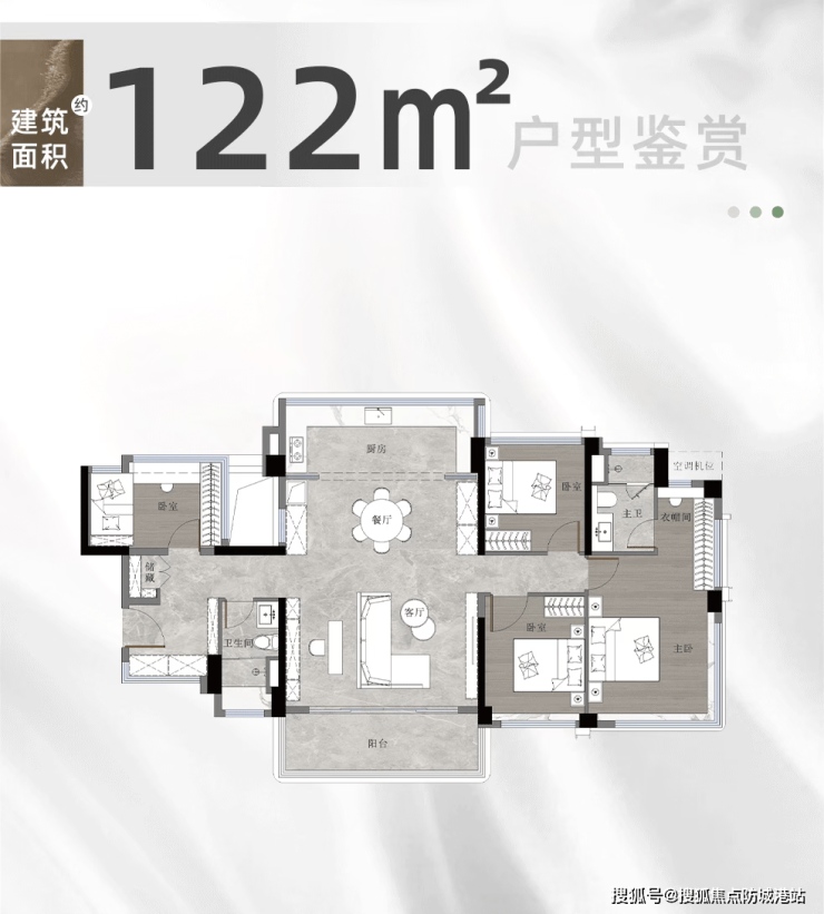 建面约122㎡4+X房两卫:建面使用率约118%,套内使用率148%,使用面积约142㎡,超越竞品169㎡四房使用空间,堪比市面140-160㎡四五房产品。户型空间开阔,四房基础上增设灵动X空间,可打造为茶室、健身房等,满足大家庭居住及社交需求,全屋智能系统与精装标准,彰显品质感。