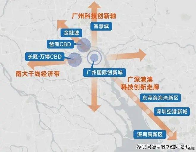 「三大科创智慧产业带交汇——广深港澳科技创新走廊、广州科技创新轴和南大干线经济带」
