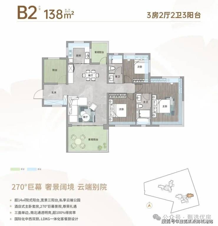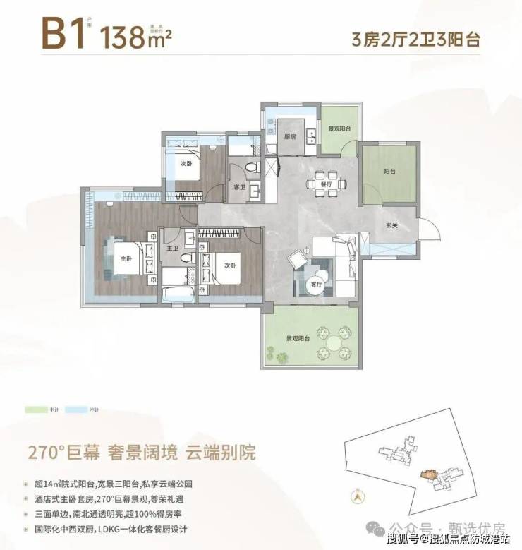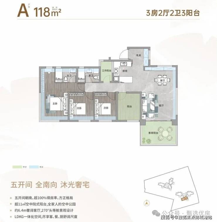 核心卖点四:超新户型,越级舒居。亚艺板块首个超新规作品,实用率超100%(部分达130%),高赠送设计;2梯3户、3米层高,低密舒居规划;118-138㎡奢享四房,270°头等舱式设计、空中院式阳台,适配三代同堂,空间体验超前。