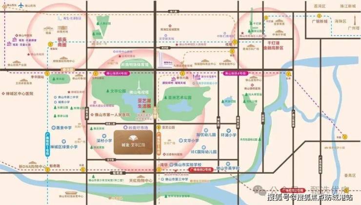 项目位置:佛山市禅城区石湾板块文华中路与深宁路交汇处(亚艺湖板块核芯区)