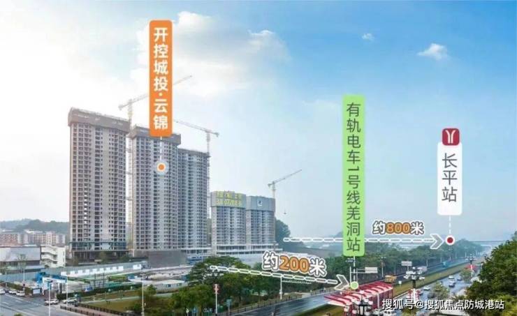 项目距地铁21号线长平站步行距离约800米,且有轨电车1号线羌洞站紧邻小区出入口。