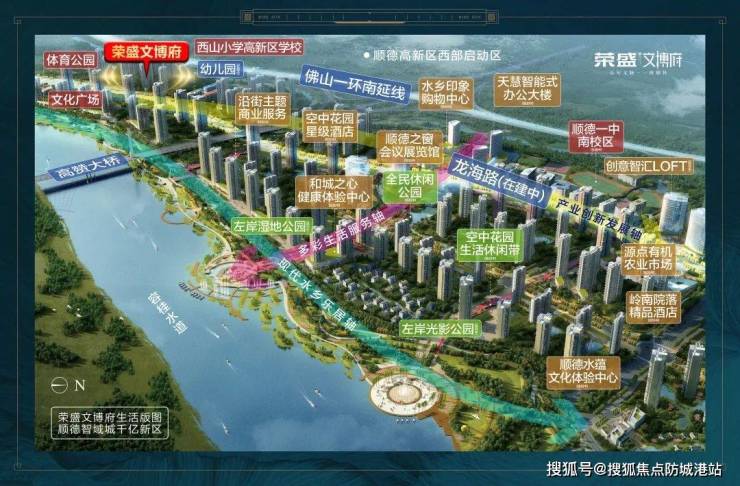 荣盛文博府位于顺德高新区德富路与顺新路交汇处,由千亿房企荣盛精心打造。作为助力大湾区发展的重点项目之一,荣盛文博府占地面积达72,709.83㎡,总建筑面积为208,119.49㎡,容积率仅为2.0,绿化率高达30.36%。其独特的地理位置和高品质的规划设计,使其成为顺德杏坛区域内的亮点住宅项目。