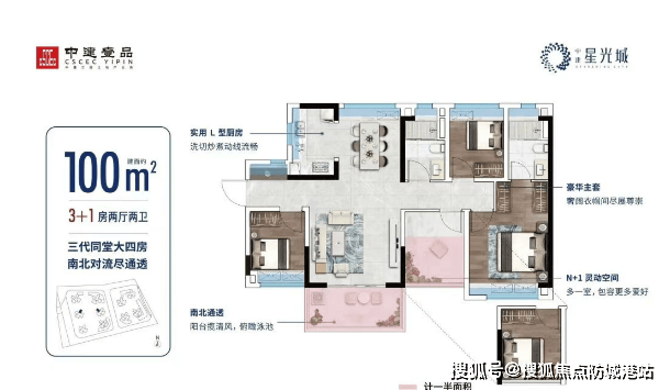 中建星光城主打“高实用率+全南向”产品哲学,全系户型实用率高达94%-96%,远超市场平均水平。主力在售面积段为69-100㎡,精准切中刚需及刚改痛点: