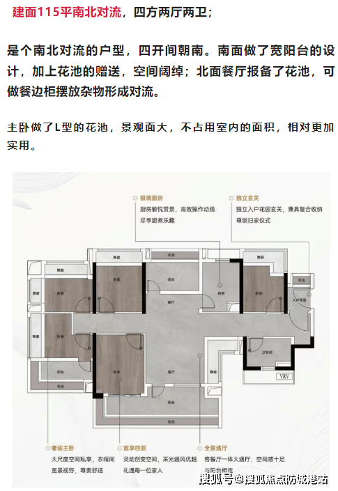 建面115平南北对流,四方两厅两卫:南北通透,四开间朝南,宽阳台设计,空间阔绰。