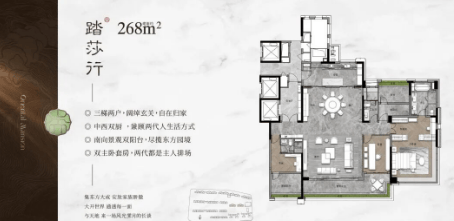 268㎡五房两厅四卫(双主套):豪华配置,专为追求极致生活品质的家庭打造。