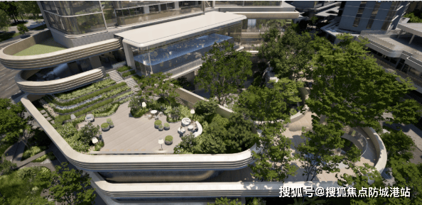 在这片抬高的空间中,一座名为“船舷花园”的空中秘境悄然浮现。设计灵感源自远洋巨轮的甲板曲线,通过退台式布局与流畅弧线,营造出漂浮于城市之上的绿洲。林泉、溪流、瀑布、花木错落交织,步移景异,带来持续的新鲜探索感。