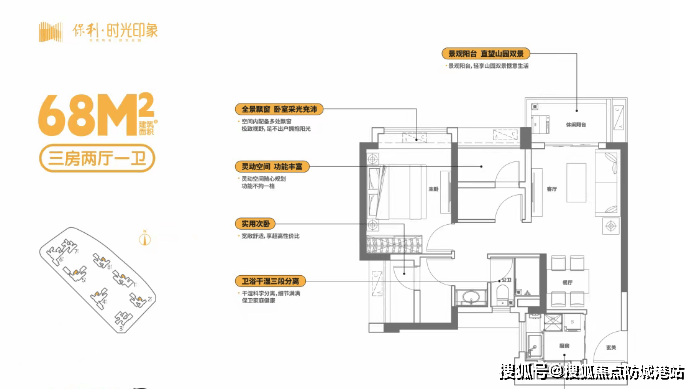 68㎡三房一卫:低总价上车,功能齐全的小户型,适合刚需首置者。北眺黄山鲁森林景观,无遮挡视野。