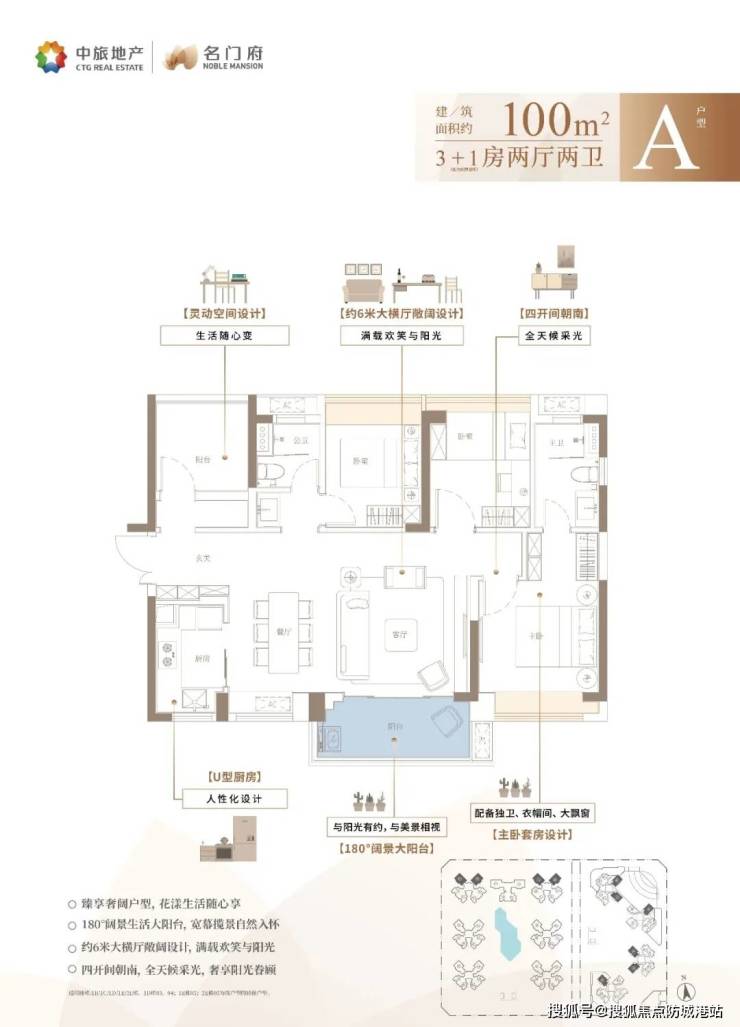 横厅设计:面宽达6.8米,连接7.2米景观阳台。