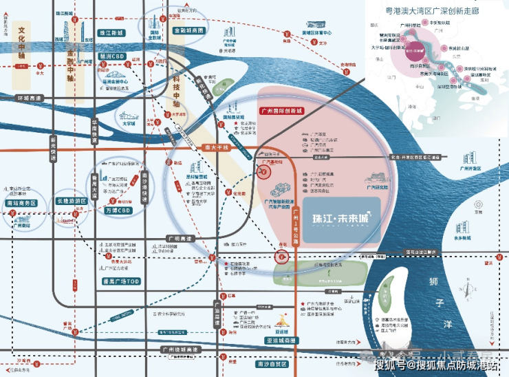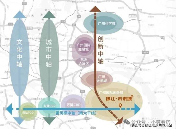 珠江未来城的战略性地位,是其价值的核心引擎。项目精准落位于粤港澳大湾区的几何核心,更是广州城市发展“第三中轴”——广州科技创新中轴的关键节点之上。这条中轴,串联起广州国际金融城、琶洲数字经济区、广州国际创新城(含大学城)等核心板块,是广州面向未来,打造科技创新高地的主脉络。