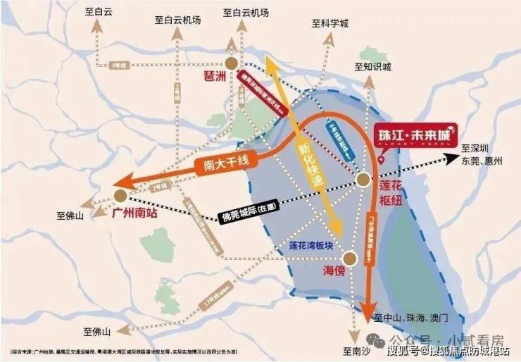 快速路网方面,项目紧邻城市交通大动脉——南大干线。这条被誉为“黄金科技走廊”的东西向干线,已部分通车,全线贯通后将成为佛山-番禺-东莞-南沙的快速通道,极大提升区域通行效率。同时,新化快速路已全线通车,从此处驾车前往琶洲互联网创新集聚区、金融城仅需约25分钟,无缝接入广州中心城区的快速生活圈。