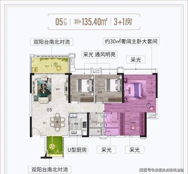 135平3+1房2厅:四开间看珠江及小蛮腰,南北对流双阳台,宽敞明亮。