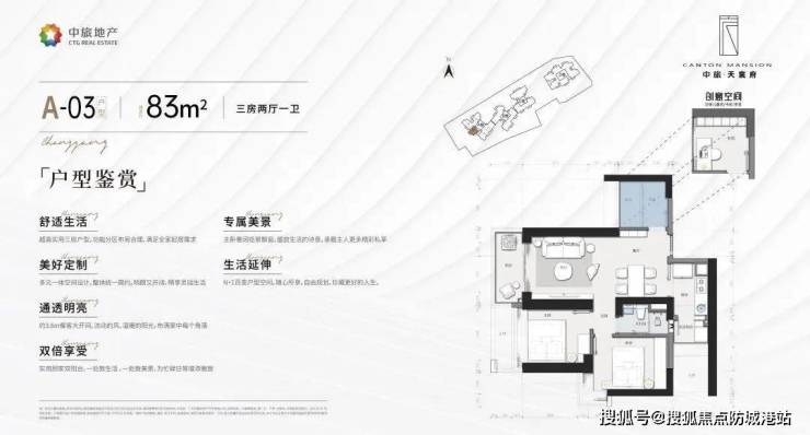 82㎡三房:南向主卧+U型厨房,得房率85%,总价680万起,适合首改家庭;
