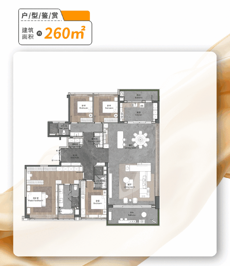 绿城·揽江印月位于广州市番禺区市桥芯,是一个以一线南向正席瞰江为特色的高端住宅项目。项目即将推出全新东地块建面约195/260㎡的藏品级大平层户型,凭借其稀缺性、高品质的生活空间设计以及卓越的自然资源优势,成为市场瞩目的焦点。