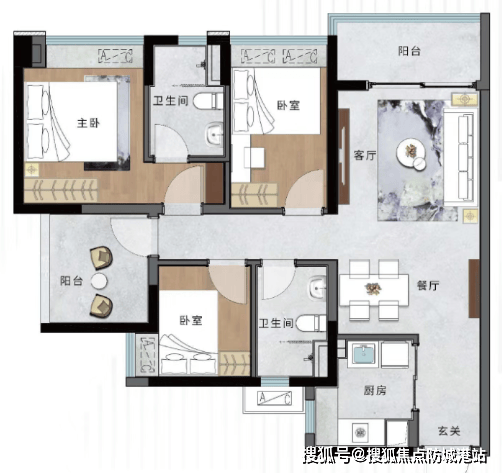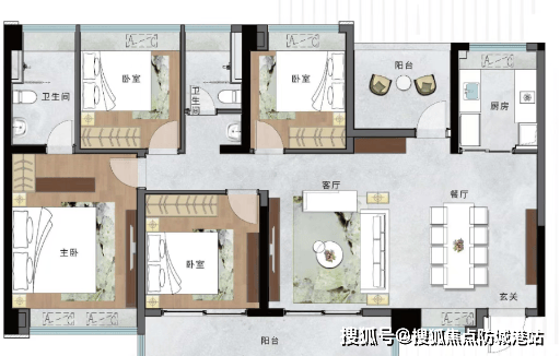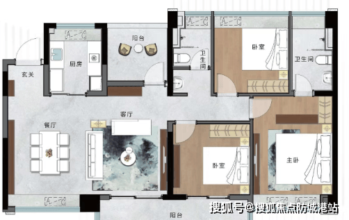 88㎡三房两厅两卫(南入户):罕见实现四房布局,含主卧套房,是横沥岛最小面积四房产品,得房率与功能性强。