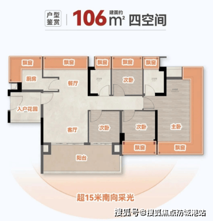 建面约106㎡四房两厅两卫,瞄准主城品质改善客群,全明单边位户型设计,全屋无暗间,南北通透格局,居住通透干爽。南向超大面宽设计,搭配六点四米阔景观景阳台,直面社区中央园林与滨江风光,观景视野开阔。主卧打造奢阔套间设计,搭配环幕观景飘窗,私密性与舒适度兼具,独立功能分区明确,书房、次卧灵活改造,可满足居家办公、兴趣收纳、客房预留等多元需求,改善家庭一步到位,无需后期置换。