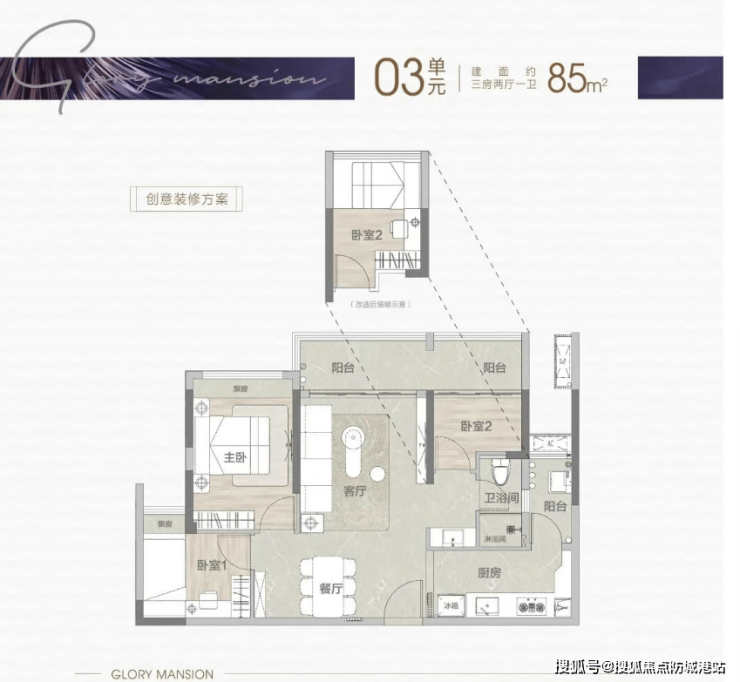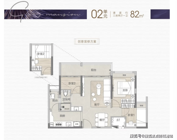 空间略大于 82㎡,布局更舒展;入户玄关设计,收纳充足;厨房 L 型操作台面,动线合理;双卧室朝南,采光充足,总价约 442 万起,性价比突出。
