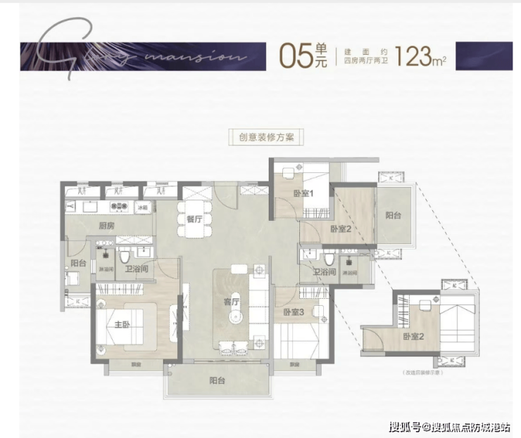 123㎡楼王四房:总价约640 万,主城核心奢阔户型,稀缺性拉满。