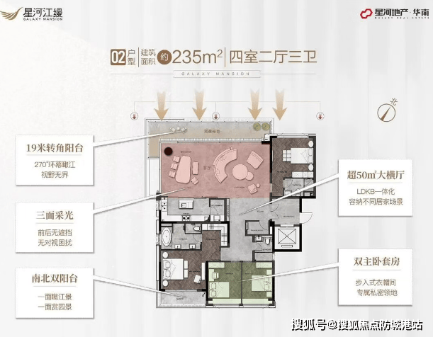 星河江缦推出的户型面积涵盖179至235平方米的大平层,全部采用双套房设计,满足高端居住需求。具体户型亮点如下: