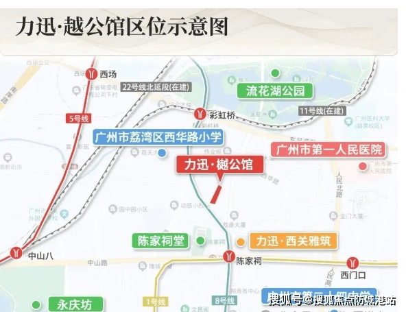 在老城区买房,交通拥堵往往是最大的痛点,但力迅樾公馆却用得天独厚的轨道交通优势,彻底打破了这一刻板印象。项目位于真正的“双地铁”核心辐射圈,步行约6分钟即可抵达陈家祠站(1号线/8号线换乘枢纽)或彩虹桥站(8号线/11号线/13号线/22号线四线交汇)。这种高密度的路网覆盖,在广州乃至全国的同级别老城区项目中都极为罕见。特别是彩虹桥站的开通,标志着广州地铁环线的正式闭环,这意味着从业主家门口出发,只需一次换乘,即可快速通达广州市区的任何一个角落,极大地提升了出行的便捷度与时间效率。
