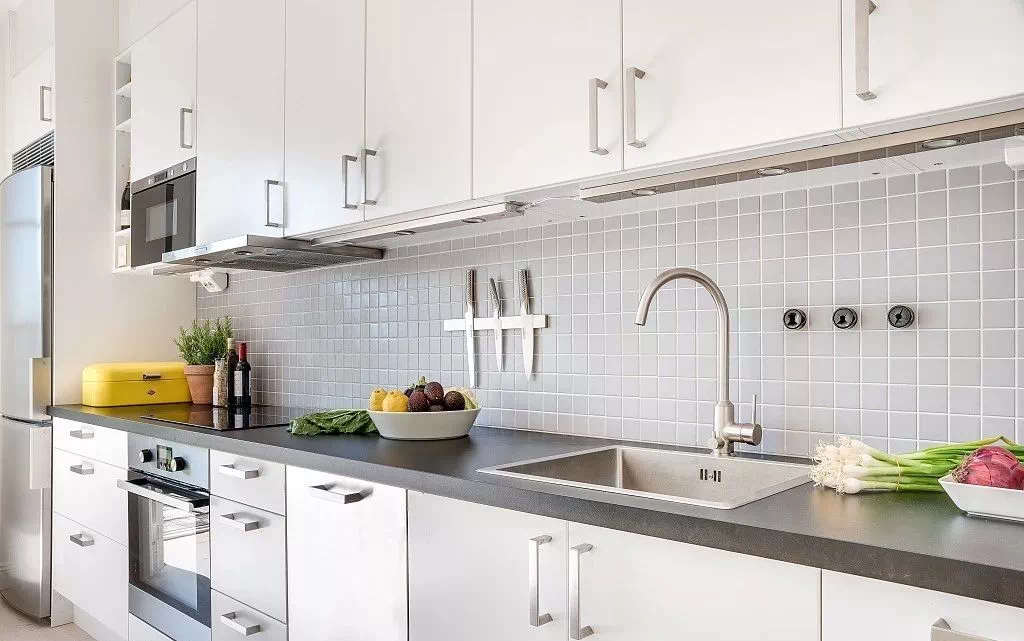 4、台面高度不合理,台面的高度要根据使用厨房的人的身高定制,通常台面的高度为65—90cm。确定较佳高度的方法是:操作者前臂平抬,从手肘下返10—15cm的高度为厨房台面的较佳高度。