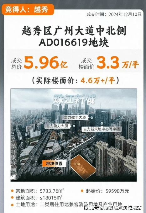 越秀東山云起位于广州市越秀区广州大道中,是2024年12月由越秀地产以59598万元总价竞得的一块优质地块。扣除配建后,楼面价约为4.6万/平方米。作为越秀区近年来首次公开出让的土地之一,该项目不仅地理位置优越,而且配备了丰富的配套设施,旨在为居民提供一个高品质的生活环境。