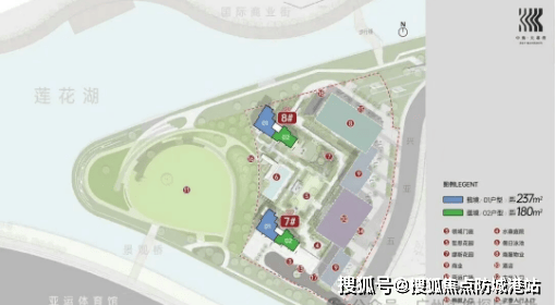 中海·天幕湾位于亚运城体育馆东侧岛尖,北临喜街,南瞰莲花湾中心湖,是整个亚运城中景观资源最优越、产品最稀缺的组团。项目占地仅1.37万㎡,总建面约9.26万㎡,容积率虽未明确披露,但从仅2栋23层住宅、88户的配置可见其低密属性。