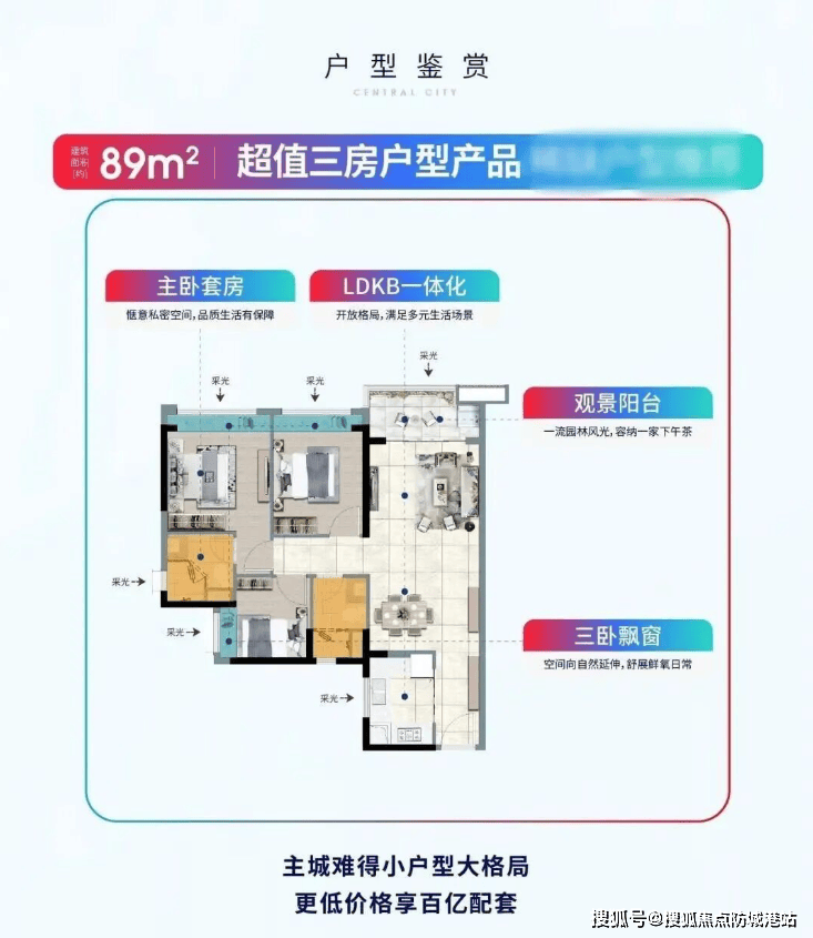 刚需首选:85㎡三房一卫(总价200-202万起)、86-89㎡三房两卫(总价230万起)。