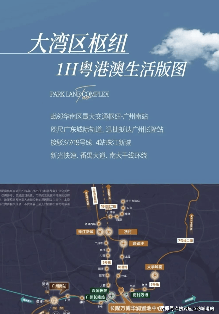 项目交通优势堪称“广州顶配”,地铁出行高效便捷到极致。二期住宅下楼即达3/7号线汉溪长隆站,真正实现“出家门进地铁”;一期距离该站也仅约500米,步行8分钟即可抵达,距离18号线南村万博站约1.2公里。作为广州含金量最高的地铁线路,3号线直达天河核心,7号线串联番禺东西向核心区域,18号线作为湾区高速地铁快速衔接珠金琶,再加上广东城际铁路,构建立体化轨道网络,轻松畅达广州各核心板块。