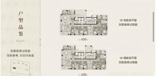 户型覆盖 203-630㎡全尺度区间,所有楼栋通过北高南低排布与楼栋扭转设计,实现 100% 望江效果。1 栋楼王为 35 层一层一户设计,630㎡户型配备独立入户庭院与 270° 环幕江景客厅,主卧套房面积超 80㎡,附带步入式衣帽间与观景卫浴。