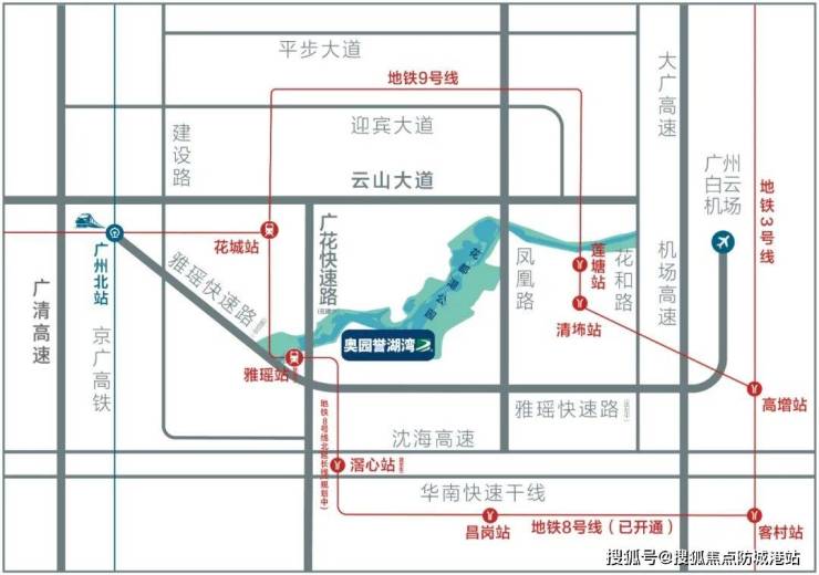 快速路网:项目旁的广花快速路正在扩建,雅瑶快速路也将改造升级为双向六车道。这些道路工程竣工后,将大大缩短通往广州中心城区的通勤时间,让“工作在市区,生活在花都湖”成为一种舒适的通勤选择。