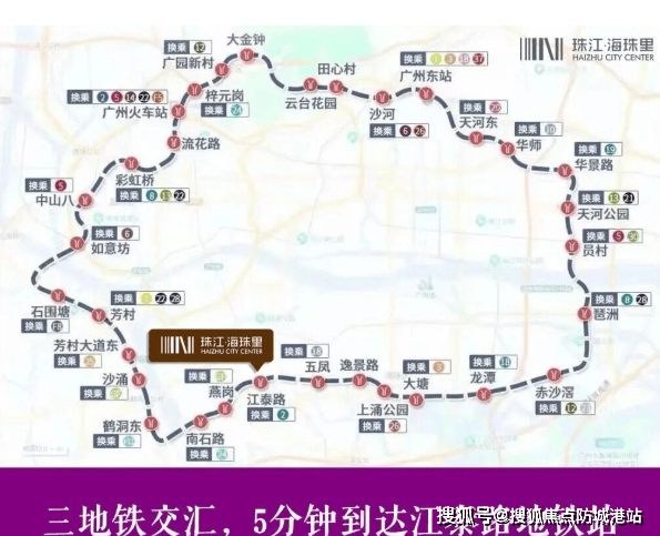 地段,永远是房地产价值的基石。珠江·海珠里坐落于海珠区燕子岗路68号,地处海珠西的核心区域。这里的地理位置之优越,堪称“左右逢源”。项目紧邻江泰路地铁站,距离2号线及在建的11号线江泰路站仅约400至1100米,同时广佛线与11号线的燕岗站也在辐射范围内。三地铁交汇的格局,构建起了一张高效便捷的地下交通网。