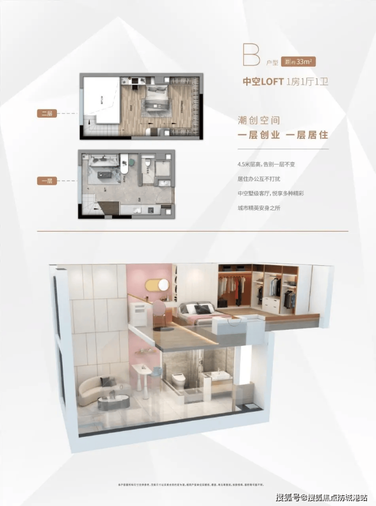 加粗 1、B 户型:约 33㎡ LOFT 一房一厅 —— 年轻白领 / 创客的理想之选