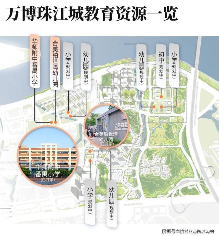 项目自身配建一所 24 班的公立小学,是华师附中番禺小学且目前已开学,符合人户一致的业主子女均可入读,学位稳定且生源纯粹。同时还有 12 班的公立合美铂世湾幼儿园,二者距离小区都很近,方便家长接送孩子上下学。在万博区域住宅配建学校稀缺的情况下,珠江铂世湾从幼儿园到小学的公立教育资源,对追求优质教育的家庭而言,无疑具有强大的吸引力。