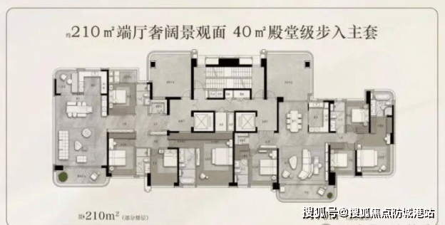 5. 建面210㎡四房两厅三卫:总价2100万-2300万,均价约10.0万/㎡,南地块少量房源在售,稀缺性突出。
